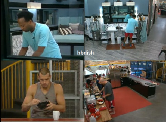 - Feeds return to Rachel making the HoH bed and both of them gathering laundry and things they'll need during the lock out from HoH.