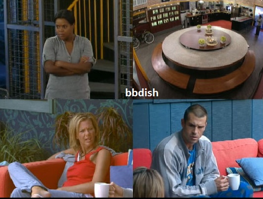 - Adam is sitting at the table eating breakfast with Lawon keeping him company. Daniele comes to the kitchen and chit chat ensues. Adam asks Daniele what she and Kalia were up to last night because BB was calling them out. Daniele says they were whispering girl talk. This somehow progresses to how stinky Brendon's farts were.