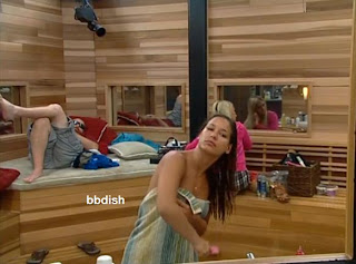 Cam 1 - Judd's shaving while Jessie's showering..Ginamarie comes in with her makeup kit.