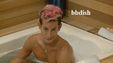 Frankie: The Button has certainly proven to be my nemesis at the moment. With any luck, it is not the nemesis that will send me home, but that remains to be seen. Veto tomorrow, which I'm about to study for, while I'm in the bathtub. Um.. I am on the block. It was definitely the most horrific betrayal ever, because it came from Caleb. But. You know. This is a game for $500,000 dollars, and to some people, money means more than friendship, loyalty and trust. And that is fine.